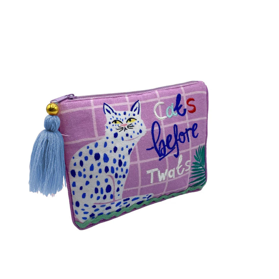 The purrfect purse for all cat lovers. This purse is made for sassy cat lovers with embroidered text and a spotted cat. Featuring a velvet back and a fluffy tassel its the perfect cross between style and sass.