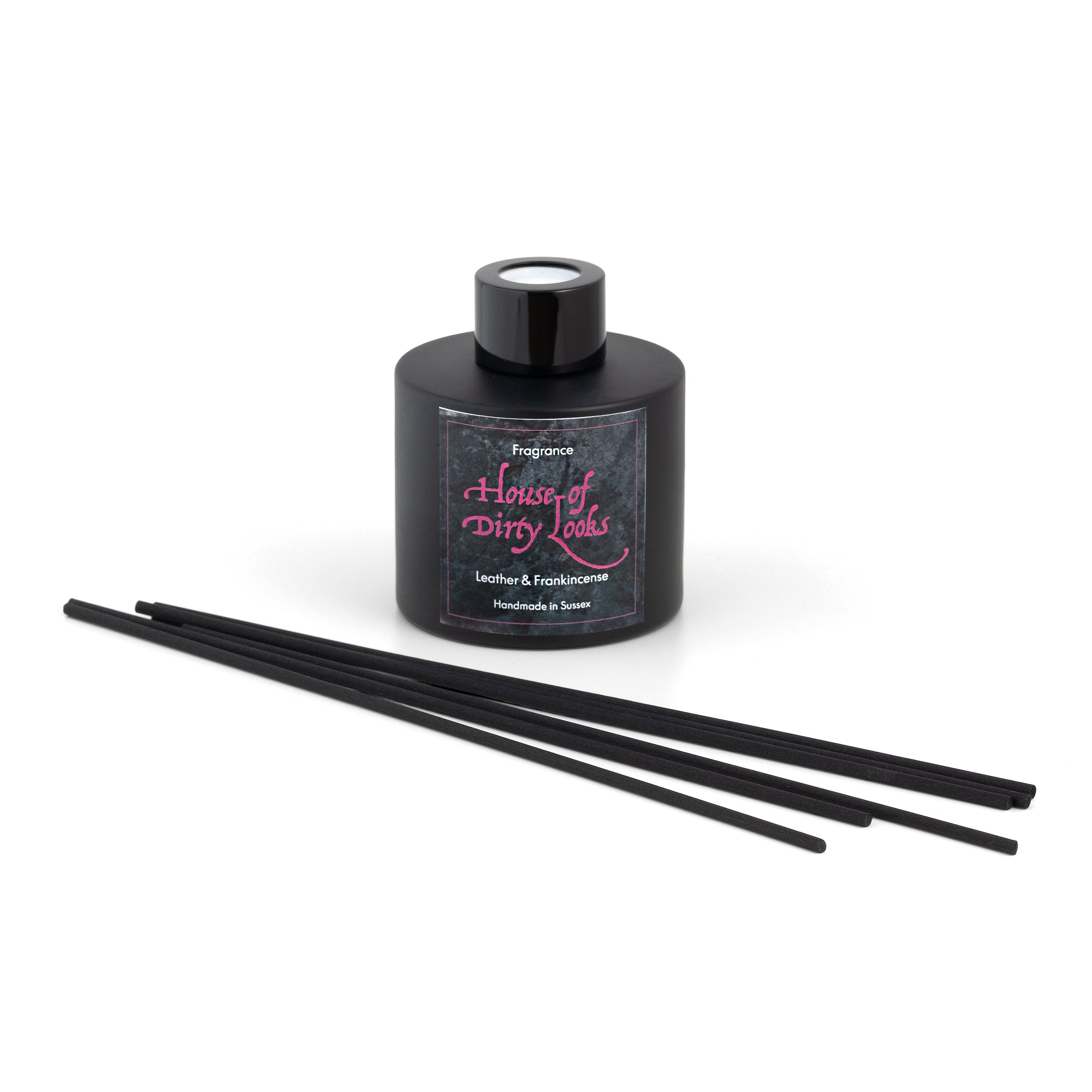 Discover the daring essence of the bespoke 'House of Dirty Looks' fragrance, crafted by Moores Home and Garden exclusively for the Barbican Dirty Looks exhibition. This reed diffuser combines bold notes of frankincense and leather, wrapped in a sleek box and finished with a striking printed pink ribbon.