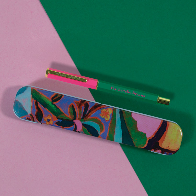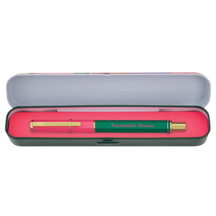 Add a pop of colour and joy when scribbling with this beautifully crafted metal refillable pens. Packed in handy retro tins to store all your favourite writing instruments. Pen writes in black ink.